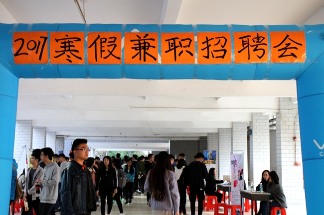 本网讯 (勤工助学管理中心)12月27日下午,由勤工助学管理中心主办的2017年寒假兼职招聘会在我院4、5、6、7号教学楼一楼平台举行。