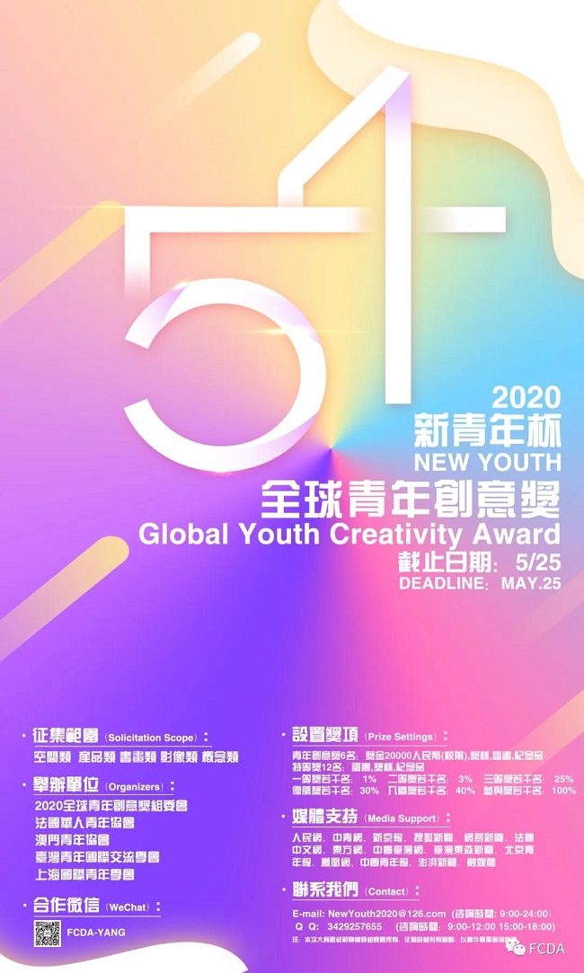 据悉,本次大赛是由全球青年创意奖组委会、法国华人青年协会(Association Jeune Chinois D’Europe)、澳门青年协会、台湾青年国际交流学会、上海国际青年学会等境内外机构联合主办。为纪念五四运动101周年,激励当代青年继承发扬五四光荣传统,担当历史重任,传承全球华人的爱国情怀,持续弘扬五四爱国精神,面向全球华人地区、中国大陆、港澳台地区高校师生征稿,共计收到国内外几百所高校参赛稿件15021件。