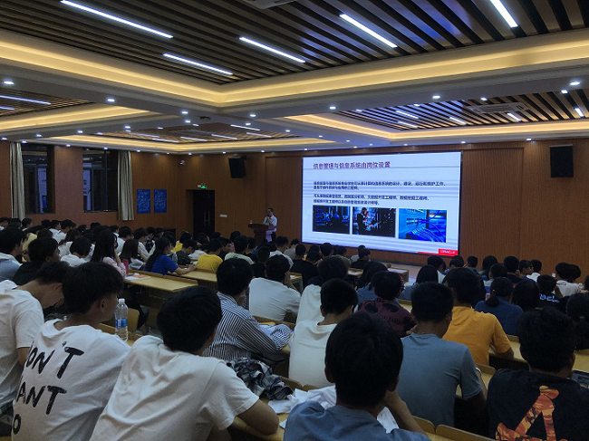 第一场讲座于2020年11月3日晚上7:00在松山湖校区6-101开展。本场讲座的主讲人是来自广州腾科网络技术有限公司的欧灿荣总监,讲座的主题是“信管专业就业与岗位分析”,信管专业的全体新生参加了此次讲座。欧总监从多个角度给同学们进行了详细的专业解读,首先欧老师分析了目前信管专业的就业环境与形式。他提到,目前数据库专业人才匮乏,数据库人才需求大,但同时专业技能要求也比较高,高专业水平是高质量就业的基础。然后他解读了目前信管专业就业岗位与薪酬待遇,普及了信管专业含金量较高的资格证书,并鼓励同学们积极报考。接着对Oracle公司以及Oracle认证体系做了介绍,最后介绍了做一名合格的Oracle数据工程师需要具备的技能与素养。