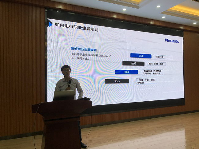 第四场讲座于2020年11月5日晚上7:00在松山湖校区6-101、5-101开展。主讲老师是来自东软睿道公司的贾元铮工程师,他讲座的主题是“IT行业发展现状和趋势与数字时代对人才的需求”。贾老师在IT行业摸爬滚打多年,具有丰富的从业经验。他首先就IT行业发展现状和趋势做了详细介绍。随后他让同学们认识到了目前市场上的软件企业需要员工具备的具体技能,全面地讲解了软件人才市场对Java工程师、Html5工程师、UI设计工程师的具体要求。最后他就大学生四年的学习规划给同学们提了一些非常好的建议。
