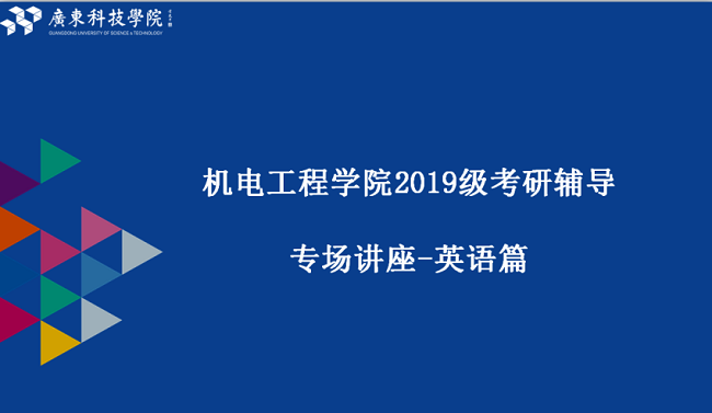 本网讯(机电工程学院)2020年11月18日下午,机电工程学院在松山湖校区5-101开展了2019级考研辅导系列讲座活动-英语篇,本系列主要针对公共科目进行备考方法指导,共2场,本次为第2场。在外国语学院的大力支持下,本次讲座邀请到陈晶老师作为第一主讲嘉宾,机电工程学院龚艳红老师作为第二主讲。讲座由院长助理李真真主持,专任教师刘丕新、黄仁龙及200名师生参加。