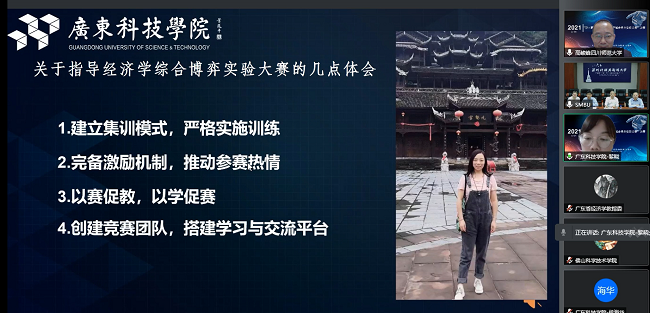 黎老师指出:“作为一名应用型本科院校的老师,我深深的体会到,创新能力和技术技能的训练、提升对每位学生的重要性,它能够培养学生解决实际生产中具体技术和管理问题的能力,这不仅关系到学生的毕业和就业,而且关系到学生未来的职业发展。经济学综合博弈实验大赛就是对学生专业技能一次全面的检验与考核。在学院领导的支持下,我校创建了经济学综合博弈实验大赛团队,并从‘建立集训模式,严格实施训练’、‘完备激励机制,推动参赛热情’、‘以赛促教,以学促赛’、‘创建竞赛团队,搭建学习与交流平台’四点着手,保障了优秀学生代表学校参加各类优质的比赛。”黎老师的发言说出了广科师生的心声,得到了主办方的大力肯定。至此,大赛圆满落下帷幕。