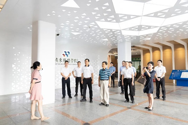 张彩芳院士一行首先莅临学校南城校区,考察了南城校区图书馆、体育馆和财经学院实训中心。随后驱车前往松山湖校区,实地参观了“一河两岸”校园景观,重点考察了学校智慧课室、“智慧校园”中控系统和产业学院的建设情况。