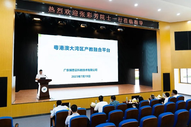随后,陈标新副校长还重点介绍了博思云产教融合平台与大湾区产教联盟建设情况。博思云产教融合平台的建设引起了张彩芳院士的兴趣,她指出,运用大数据与人工智能技术,助力人才培养、推进资源整合大有可为;大湾区产教联盟的建设也得到了孟春教授的点赞,他认为是促进东西部人才交流、推进乡村振兴与产业发展的创新举措。