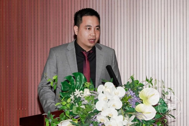 广东科技学院校友会第二届理事会常务副会长纪祺彬代表新一届理事会作任职讲话。他首先感谢母校一直以来的关心与帮助、感谢广大校友的信任与支持,表示会带领好新一届理事会团队,全力做好高质量校友服务,推动校友会工作再上新台阶。他希望借助校友会这个平台,集广科人之力、成广科人之业、圆广科人之梦,把校友会打造成校友心灵归宿的精神家园、辉煌事业的发展平台、创新创业的成长阶梯。