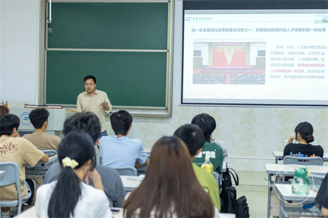 10月10日上午,梁瑞雄校长为24级电商本科5班的同学们讲授新学期“思政第一课”。梁校长着眼党和国家教育事业发展全局,引经据典、深入浅出,通过生动的语言和鲜活的案例,鼓励同学们不负韶华,赓续奋斗,成为德智体美劳全面发展社会主义建设者和接班人。