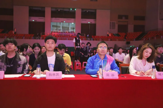 赛事特邀我校通识教育学院何小梅、邱智森,校团委老师吴灿,管理学院团委副书记杨林凯,以及第十九届校园文体艺术节十大歌手冠军陈子卓组成专业评审团。管理学院党委书记简添,管理学院学工助理、专职组织员隋启元,以及学院各辅导员老师、校院学生骨干代表出席活动。