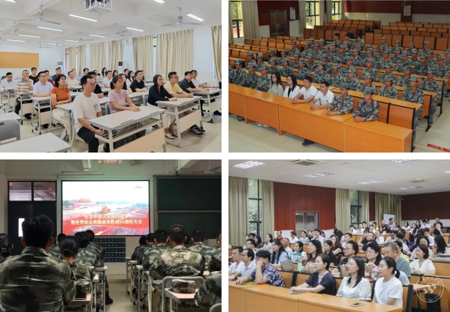 本网讯(党委办公室)9月3日,是中国人民抗日战争暨世界反法西斯战争胜利80周年纪念日。备受瞩目的盛大阅兵活动在天安门广场如期举行,学校精心组织全校师生通过集中观看、个人收看等形式共同观看阅兵直播。师生热切关注阅兵动态,虽身处不同地方,却心系一处,共同为祖国的强大欢呼,为民族的复兴振奋。