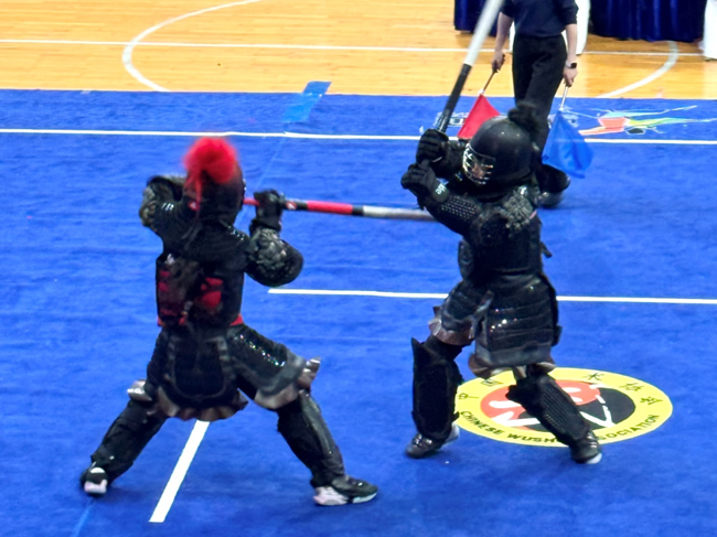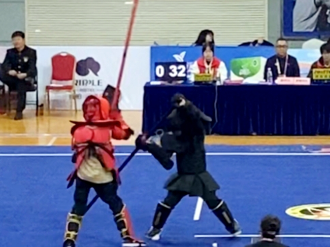 逆风追袭不言弃,惜败赛场仍动人。在半决赛中,我校队员李玟君面对陌生的竞技节奏与对手的凌厉攻势,她在第一回合明显未能适应,攻防衔接稍显滞涩,比分逐渐被拉开,最终暂落6分。在场边教练的战术呼喊指引下,她在第二回合彻底找回状态,她手中兵器挥转灵动,攻防转换行云流水,每一次格挡都精准沉稳,每一次突刺都透着不甘与倔强,比分随之持续迫近。终场哨响,她以1分之差憾负对手,最终收获铜牌。虽未能站上更高的领奖台,但她在逆境中展现的顽强斗志与快速调整能力,同样书写了属于自己的精彩竞技篇章。