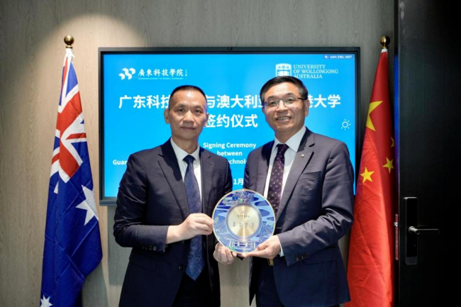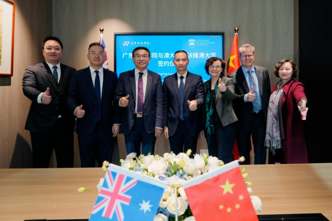 本网讯(国际教育学院)2025年11月2日,广东科技学院代表团与澳大利亚沃隆港大学代表团在北京举行会谈并正式签署合作谅解备忘录,沃隆港大学是澳大利亚排名前10的大学,在2026年QS世界大学排名中位列第184位,此次签约标志着双方合作进入新的阶段。