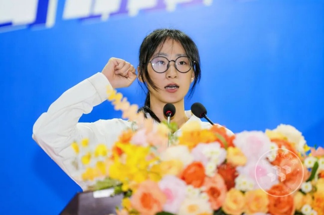 随后,来自管理学院的运动员钟畅同学和来自通识教育学院的裁判员林小曼老师分别代表全体运动员、裁判员进行庄严宣誓。