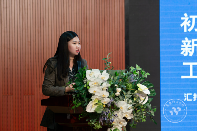 党委办公室副主任、品牌中心副主任张静静致辞。她回顾了新闻中心在运营多平台、打造官微品牌方面取得的卓越成绩,并指出在学校品牌中心成立的新阶段,新闻中心被赋予了更重要的品牌塑造使命。最后,她对新成员提出四点希望:立足品牌、提升能力、协同创作、贴近师生,共同为学校发展注入传播动能。