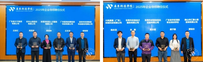 会上,学校与TCL王牌电器(惠州)有限公司、中国大地财产保险股份有限公司、深圳市讯方技术股份有限公司、瑞幸咖啡(东莞)有限公司等16家优质企业,以及东莞市科技企业孵化协会、东莞市旅游协会、东莞市汽车行业协会等3家行业协会正式签署校企合作协议,并授予19家单位“广东科技学院大学生就业实习实践基地”牌匾。并且,学校还聘任了25位行业专家为企业导师,他们将把前沿的产业知识与实践经验融入教学,为学生成长提供精准赋能。