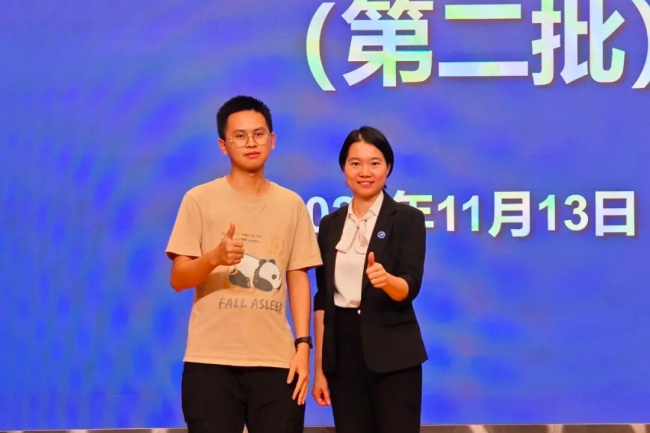 也正是在这条追光的道路上,梁海祥结识了另一位良师益友——陈飞老师。他们相识于港澳研学项目,自此每当梁海祥遇到困境时,陈飞老师总能及时出现,给予他最坚定的鼓励与最有力的支持。“遇到问题要自己想办法解决,有需要我可以帮助协调沟通。”陈飞老师常把这句话挂在嘴边,如同给予梁海祥一颗定心丸,让他在追光的道路上愈发笃定,无畏前行。