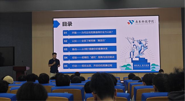 本网讯(机电工程学院)为激发学生电子设计创新热情,助力学子把握国家级竞赛机遇,12月2日晚,全国大学生电子设计竞赛动员交流会在松山湖校区2-101报告厅顺利举行。本次交流会由机电工程学院竞赛负责人陈权老师主讲,全国二等奖获得者郑鑫升学长分享实战经验,彭培铭等多位专业教师出席,学院180余名对电子设计感兴趣的学生到场参与,现场学习氛围浓厚。