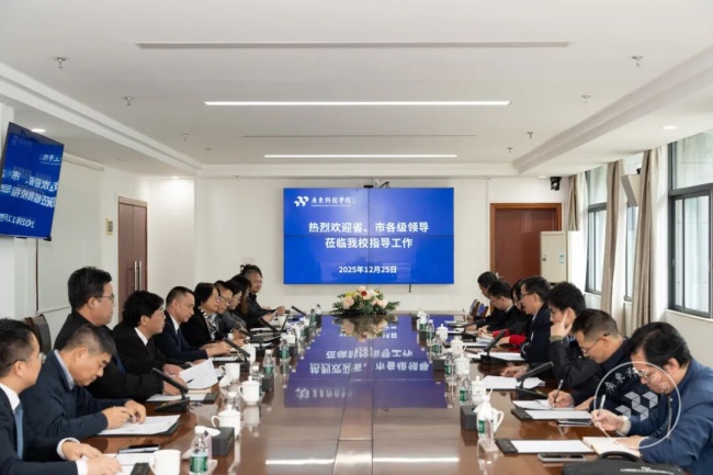 本网讯(品牌中心)12月25日下午,广东省科学技术厅党组成员、副厅长吴世文一行莅临我校南城校区,开展联系指导专题调研。此次调研旨在贯彻落实广东省委教育工作领导小组成员单位联系指导民办高校的部署要求,通过实地走访与座谈交流,精准把握学校发展需求,凝聚联系指导合力,助力学校提升办学质量与科技创新能力。