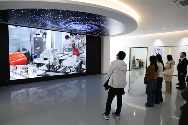 随后,在志愿者的引导和肖贤甫老师的专业讲解下,研学团先后参观了智能制造产业学院的各类实验室。从精密加工设备到智能生产线,从核心技术原理到实际应用场景,师生们边走边看、边听边问,不时驻足交流探讨,对学院先进的教学科研硬件设施和浓厚的创新实践氛围给予高度赞誉。