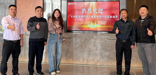 本网讯(机电工程学院)1月19日,我校机电工程学院汽车工程系主任金标教授率专业负责人费强博士、教研室主任张密、工程训练中心主任江深及李清安老师一行,赴东莞市盛川电机科技有限公司开展校企合作洽谈,并看望在企工作的毕业生。