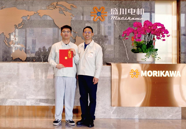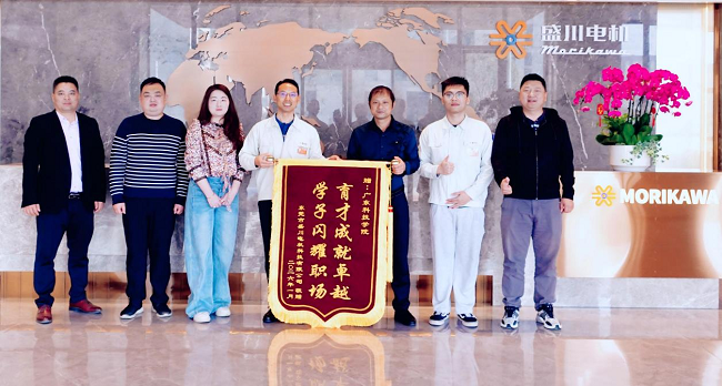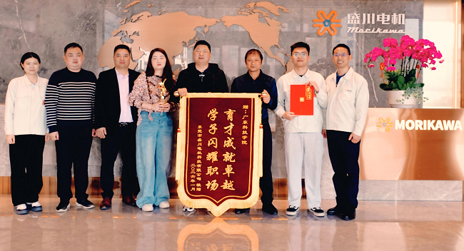 会后,在王翊凯及公司人力资源部吴锋女士的陪同下,金标教授一行参观了公司的生产车间、员工宿舍与食堂,实地感受了企业规范的管理、整洁的生产环境以及以人为本的文化氛围。王翊凯同学因在工程技术岗位表现突出,获公司高度认可。为感谢学校人才培养贡献,盛川电机科技有限公司特向我校赠送锦旗与奖杯,并举行赠送仪式。