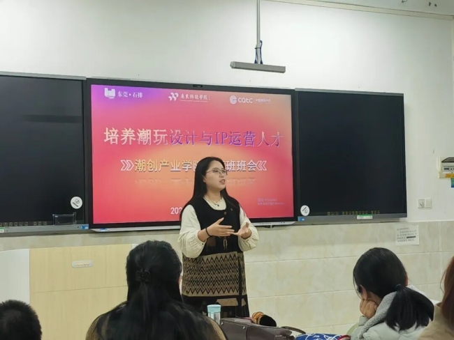 课程与师资建设上,学院联动东莞衍创文化发展有限公司、大漂亮(东莞市)玩具有限公司等本土知名企业,共建潮玩IP策划与运营等特色实战课程,23级15门核心课程企业深度参与率达75%,实现课堂与岗位无缝衔接。同时,组建由23名校内教师、9名行业资深导师构成的“双师型”队伍,通过联合授课、七天沉浸式特训等方式,全方位锤炼学生实战能力。政府搭台、学校主导、企业赋能,三方合力推动教育资源与产业优势深度融合,助力东莞潮玩产业提升技术水平与标准化程度。
