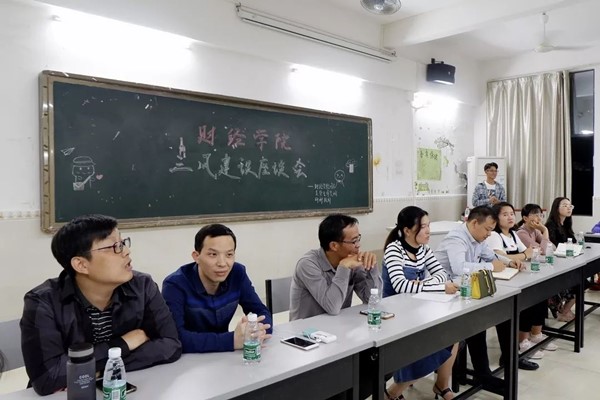29日晚,在教学楼7栋303教室召开了财经学院“三风建设”调研座谈会,出席活动的有财经学院副院长李建才,财经学院院长助理王援兵,财经学院团总支书记王丽丽,财经学院学生分会指导老师廖世雄,财经学院自律会指导老师龙涛,17级代表老师柯登峰,18级代表老师张静静,19级代表老师黎苏晓,财经学院团总支学生分会主席团候选人,调研科技部学生干部以及各班班级代表。