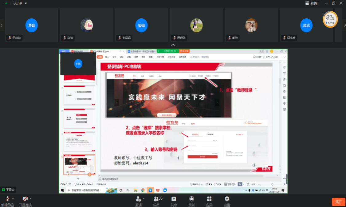 培训会上,王雪森老师指出教师要按学校规定时间对本、专科学生实习做好指导,督促学生进入实习工作,与学生保持交流,在校友邦平台完成实习信息管理工作。同时,王老师详细讲述了校友邦的功能模块和教师登录的方法,明确了教师在各个功能模块操作的具体内容和要求。王老师强调指导老师一方面需要审核学生实习报名,要提醒学生实习信息要填写真实、完整,实习内容填写不能过于单薄,另一方面需要严格管理学生签到,及时进行周日志和实习报告的批阅,并要注意本、专科生实习报告的要求存在区别,并且要按照学校规定按时提交实习巡视资料,最后与企业导师共同完成实习鉴定。