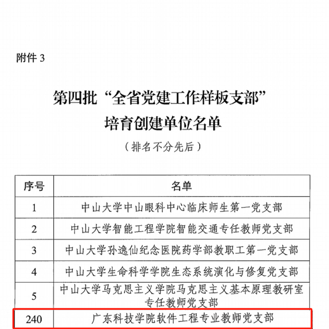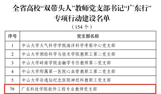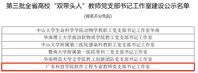 依托学校特色学科,深入实施"一融双高"建设,推进"支部建在专业上",新建7个专业教师党支部,实现全校47个本科专业100%全覆盖,将战斗堡垒延伸到"最后一公里"。软件工程专业教师党支部先后入选第三批全省高校"双带头人"党支部书记工作室建设单位、全省高校"双带头人"教师党支部书记"广东行"专项行动建设单位。