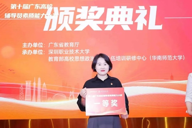 持续深化“两体两翼一学堂”党建思政教育品牌,以“辅导员工作坊+辅导员工作室”为两体,以“辅导员素质能力大赛+辅导员职业能力大赛”为两翼,创新开办辅导员“精艺学堂”,不断提升学生思想政治教育工作队伍的整体水平。财经学院辅导员张静静老师荣获第十届广东高校辅导员素质能力大赛一等奖,实现广科历史新突破。
