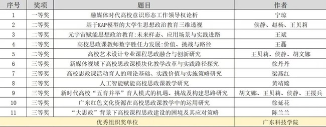 紧扣中心大局,坚持问题导向,切实用党的创新理论指导实践。获广东省高校党建研究会民办院校分会2024年年会论文一、二、三等和优秀奖共4篇;获广东省民办教育协会"马克思主义学院高质量建设的理论与实践"学术研讨会征文一、二、三等奖共11篇,同时,学校荣获优秀组织奖单位;推荐上报广东省党的建设研究会2024年度课题4项,省思政精品项目2项。