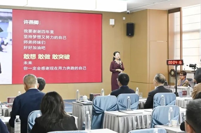 参赛教师叶梓全情投入、积极备赛,全程作答紧扣主题,逻辑清晰,既有理论深度,又紧密联系实际,展示出对党务知识等内容的深度掌握,通过从学校事业发展的角度挖掘鲜活素材,回答内容既有针对性,又有亲和力。叶梓书记在本次比赛中充分展现出扎实的党建业务功底、精湛的业务素质能力和开拓进取、奋发有为的精神风貌。
