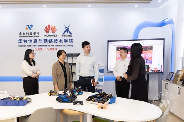 吴念香书记对东莞城市学院和东莞理工学院交流团的到来表示诚挚欢迎,陪同并随行介绍了学校的总体发展规划与“一校两区”管理模式。东莞城市学院和东莞理工学院交流团一行实地走访了 “一河两岸” 的特色校园景观,重点察看了智能制造产业学院、华为ICT学院、腾讯云产业学院和360数字安全中心。交流团对我校将创新融合全面发展与现代教育理念深度融合的校园文化建设成果,给予了充分肯定与高度赞扬。