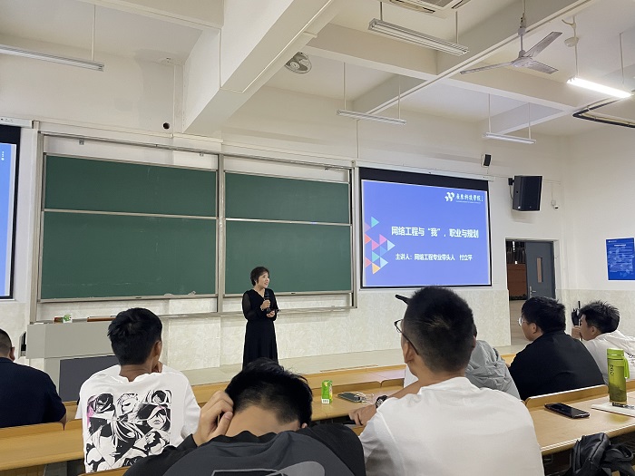 活动共分为三个阶段,首先是专业带头人付立平教授为新生们带来了关于职业与规划的精彩讲座。付教授以网络工程专业背景为切入点,深入浅出地介绍了专业的定位与培养目标,阐述了职业与职业意识的重要性,并分享了职业生涯规划的指导理论。此外,付教授还向新生们展示了丰富多彩的大学生活,鼓励大家在大学期间积极探索、不断成长。