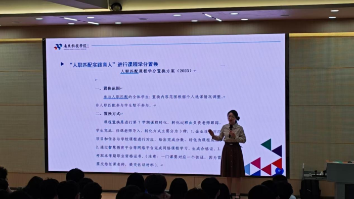 宣讲会上,宣讲嘉宾首先对“人职匹配”项目进行了详细介绍,包括项目的背景、目标、实施步骤以及预期成果等。随后,讲解了学校为支持该项目所制定的相关政策,如课程设置、实习安排、就业指导等,确保同学们能够全面了解并参与到项目中来。