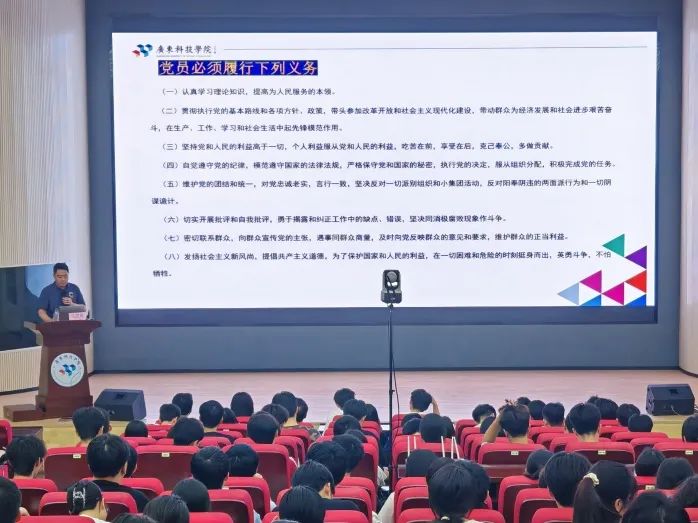 为继续加强入党积极分子的培养与考察、强化社会主义核心价值观培育,计算机学院于2025年5月28日19:30在松山湖校区教学楼2-102开展了第40期入党积极分子培训班第四节党课。本次课程由外国语学院党委书记马澄翔同志讲授,以“党员权利与义务”为主题,向全体积极分子介绍了党员具有的权利与应尽的义务。