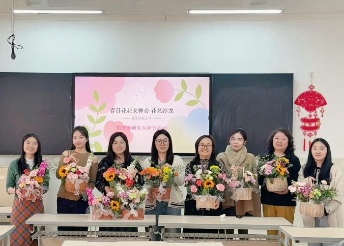 为庆祝第116个“三八”国际妇女节,丰富女教职工的精神文化生活,提升艺术修养与生活情趣,2026年3月11日中午,信息管理与信息系统教研室在松山湖校区3-303教室精心组织了一场温馨雅致的插花艺术活动。教研室全体女教师欢聚一堂,在花香与笑语中共度美好午间时光。