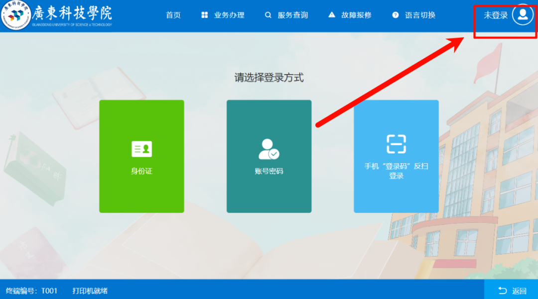 点击主界面右上角的【登录】按钮,进入登录认证界面,可通过账号密码登录(首次登录为身份证号)。
