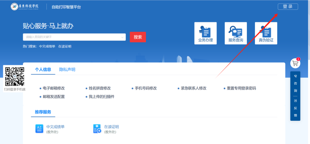 专业打印业务范围:该平台提供线下打印和线上下载电子签章证明文件,并为师生提供24小时自助打印服务,面向对象为在职教职工及2011届以后本校就读学生。
