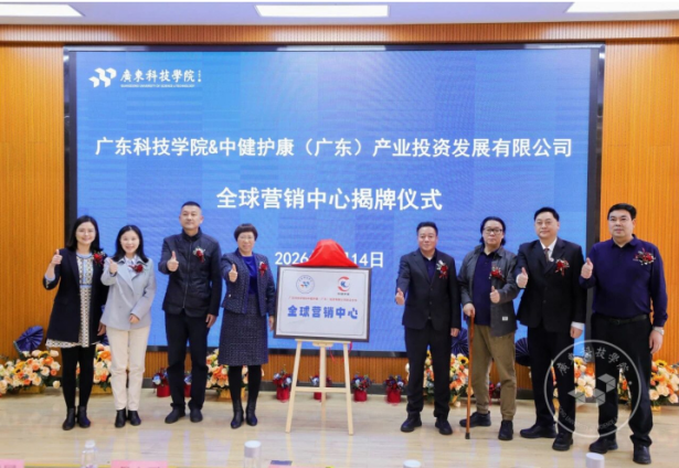 2026年1月14日,我校外国语学院与中健护康集团全球营销中心揭牌仪式成功举行,标志着中健护康集团全球营销中心正式落户广东科技学院丝路跨境电商产业学院,双方在人才共育、产业共创、品牌出海等领域的合作迈入实质性发展阶段。