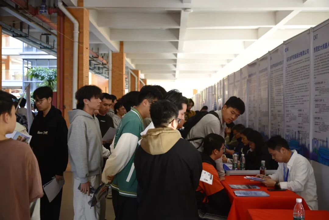 活动现场汇聚了来自粤港澳大湾区内外近200家知名企业,涵盖国企、上市公司、国家级专精特新“小巨人”企业及高新技术企业,涉及高端装备制造、工业互联网、人工智能、新能源、数字金融等多个前沿领域,共提供超过600个优质岗位,人才需求总量超6000人。3000名校内外同学踊跃前来求职,累计投递简历2000余份。活动线上线下同步开启,为毕业生提供丰富多元的就业选择。