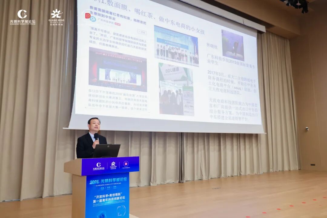 本次论坛聚焦青年科技创新与产业发展深度融合,汇聚了国内外顶尖科学家、行业领军人物、创投机构代表及青年创客200余人参会。广东科技学院不仅是大湾区产教联盟理事长单位,更牵头成立了全国跨境电子商务产教融合共同体等产教融合平台,构建了“一体两翼三智库三支撑”的生态体系。论坛期间,青创会数字经济与产教融合工委会副主任委员、全国跨境电子商务产教融合共同体秘书长李建才博士作题为《产教融合赋能创新创业——以广东科技学院跨境电商创业人才培育为例》的专题报告,详细介绍了学校在产教融合培养创新创业人才的探索与实践。