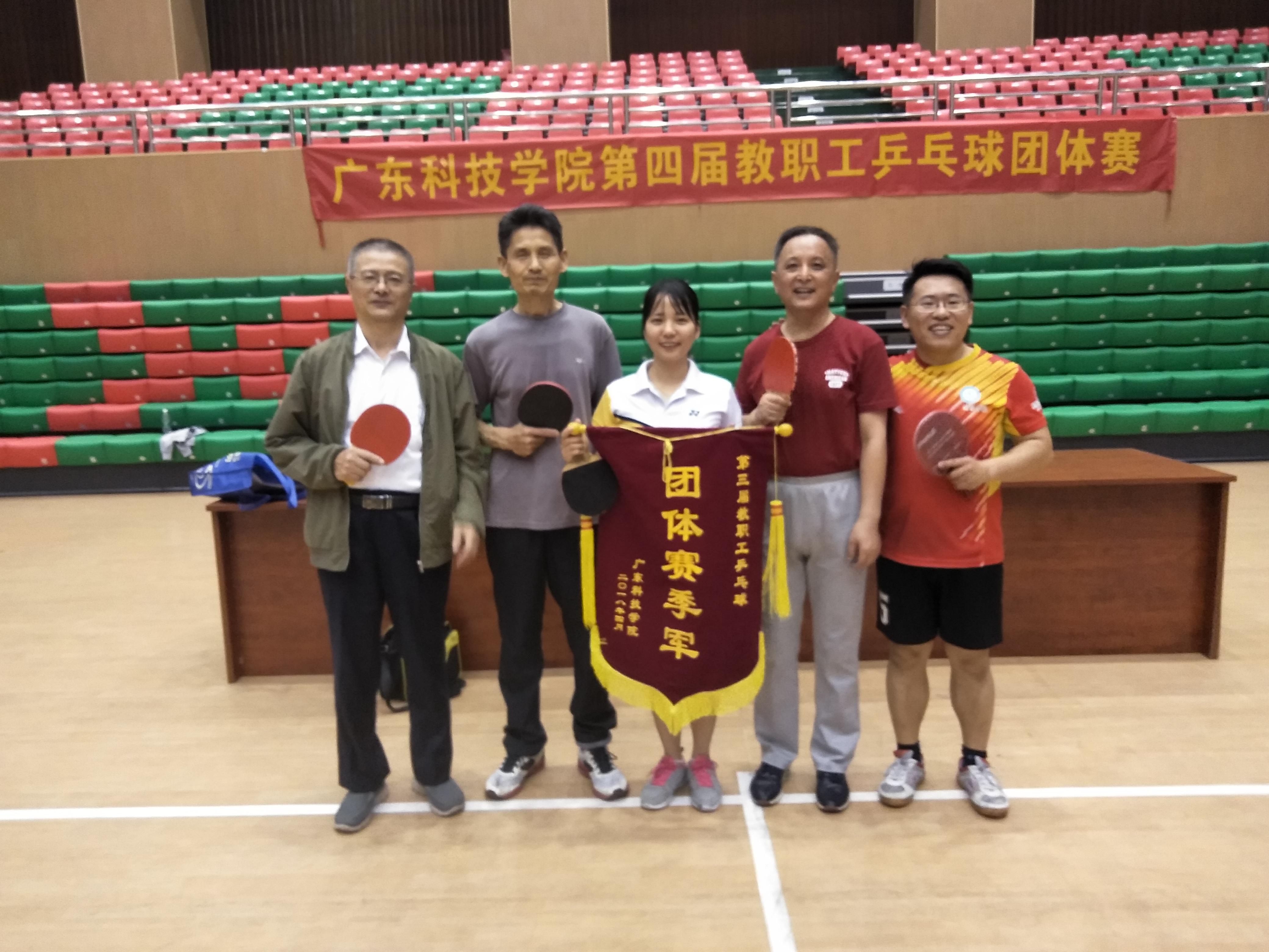 本网讯(王伟)4月18日,学院第四届教职工乒乓球团体赛在体育馆举行。思政艺术系乒乓球队在比赛中发挥团队协助,顽强拼搏,最终再次获得季军。