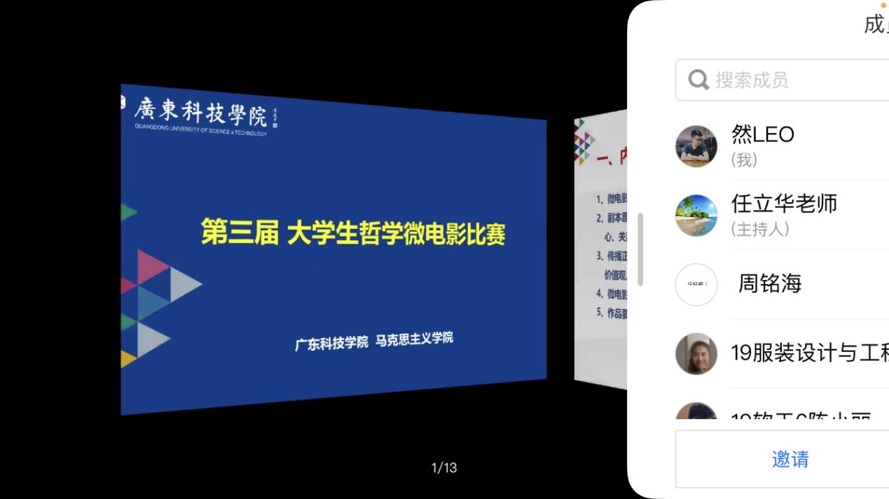 本网讯(马克思主义学院)受疫情防控影响,马克思主义学院原理教研室机动应变,将“第三届大学生哲学微电影”比赛调整为线上评比,于2021年6月25日晚7:30至9:30在腾讯会议室成功举办。马克思主义学院院长林艳教授、原理教研室主任任立华副教授和部分教师、19级本科的80多名学生参与此次线上比赛活动。