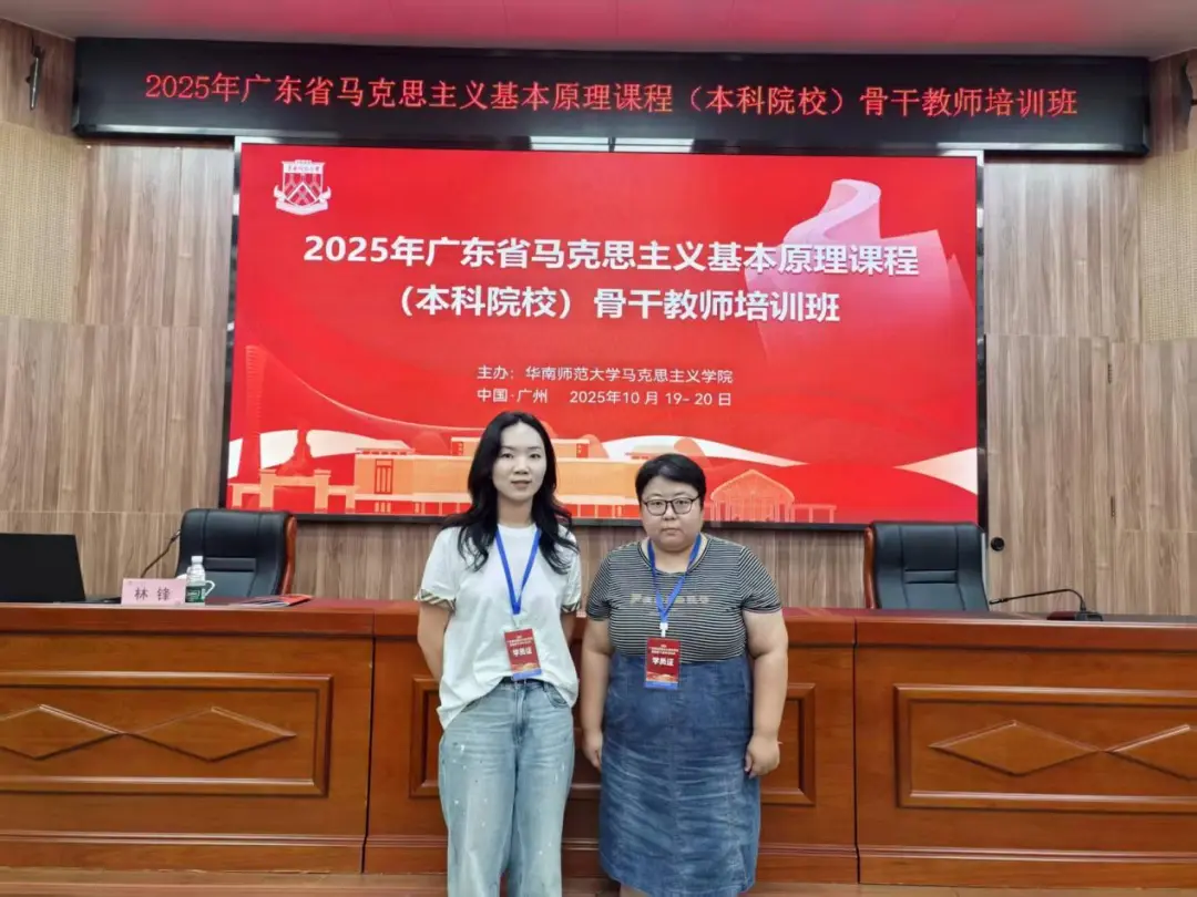 2025年10月20日,由广东省教育厅主办,华南师范大学承办的2025年广东省高校“马克思主义基本原理”课程骨干教师培训在广州召开,来自全省各高校的骨干教师及专家领导共120余人参加了此次培训,我校马克思主义学院选派了陈晓辰博士和黄楠博士两位老师参与了此次培训。