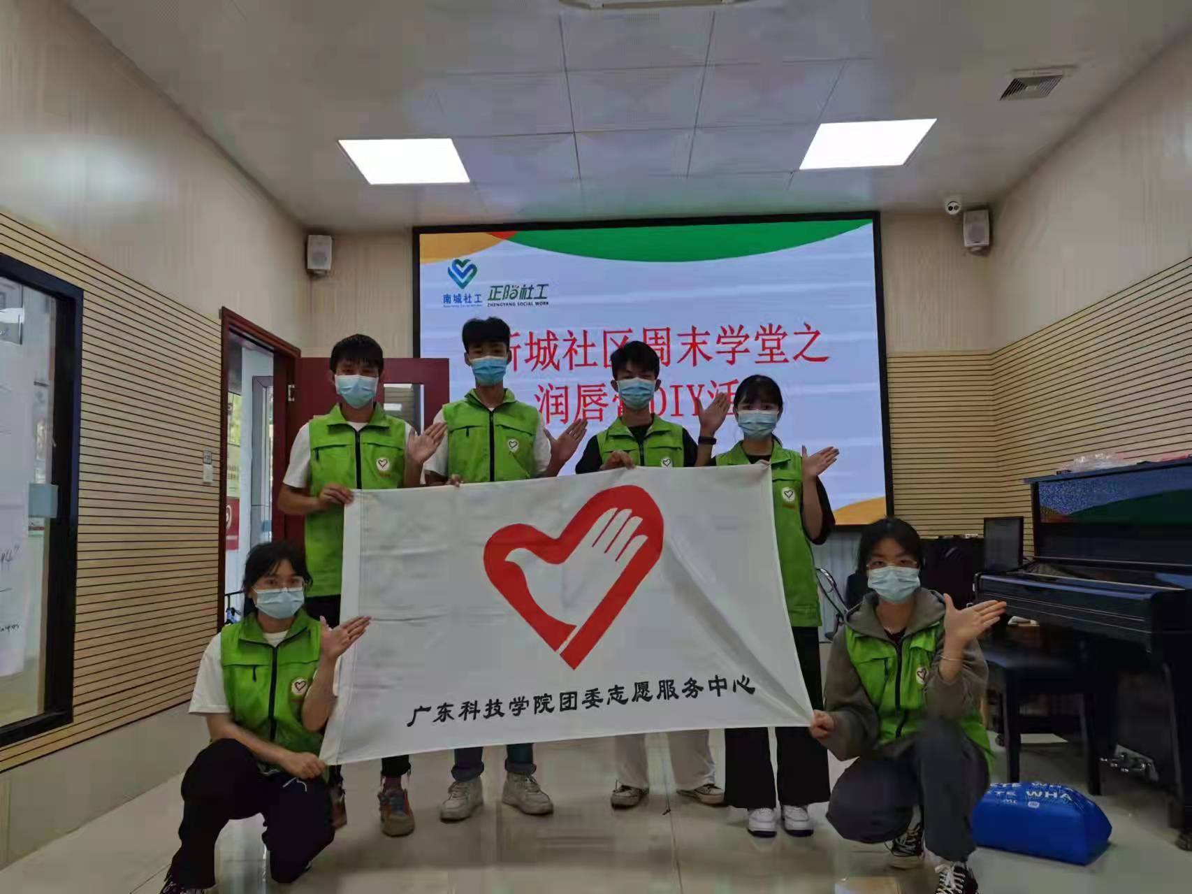在手工活动开始前志愿者们提前到新城社区布置好场地,把制作润唇膏的材料工具摆放出来,志愿者们先提前做一个润唇膏熟悉一下一些细节问题以便解答小朋友们的问题。大部分小朋友和志愿者们拿出香精、橄榄油、蜂蜡等材料及制作工具时,对于如何让眼前桌上的材料变身成为润唇膏保持着好奇、疑问的态度,认为这是一件不简单的事情。但是随着志愿者一边制作一边对配方比例、制作步骤进行生动地讲解,疑问消失了,大家只剩下好奇,生怕漏掉任何一个环节全神贯注地听讲。在志愿者示范制作完成之后,小朋友便在志愿者的辅助下迫不及待地动起手来,一边回想着之前社工的示范,一边按教程上的步骤小心翼翼地调配比例、加热搅拌、融化、灌装、定型, 随着一步一步制作过程的完成,一支支润唇膏DIY出来了,成果满满。就算不小心失败了,小朋友也不沮丧,在志愿者的帮助下再重新加热制作。最终在大家的努力下,共制作完成了40支润唇膏。唇膏制作完成后进入消防安全的科普环节,首先志愿者们提问了消防电话以及消防日再引入今天的消防安全主题,紧接着告诉小朋友们发生火灾时怎样的做法才是正确的,再播放一段遇到火灾的动画片加深小朋友们的印象,再接下来,给小朋友们科普灭火器的使用方法,也是先简单教学使用再播放一个动画片来加强小朋友们对灭火器使用的印象。