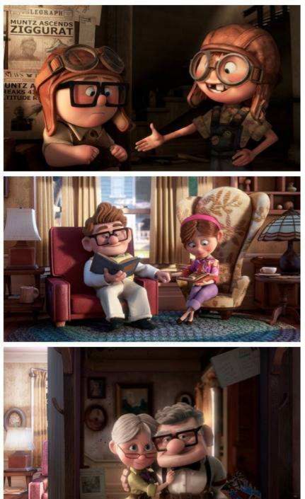 影片开头短短的十几分钟,浓缩了卡尔爷爷与老伴爱莉的一生,也深刻的诠释了"执子之手,与子偕老。"后来,卡尔爷爷为实现年轻时与爱莉约定的梦想, 与罗素结识,开始了一段飞屋环行之旅。
